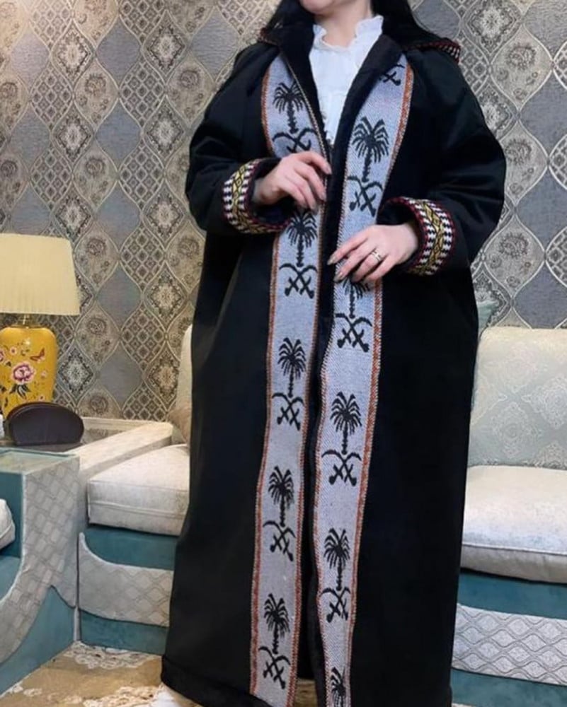 فروة مخملية سوداء بنقشة السدو البدوية المتألقة.